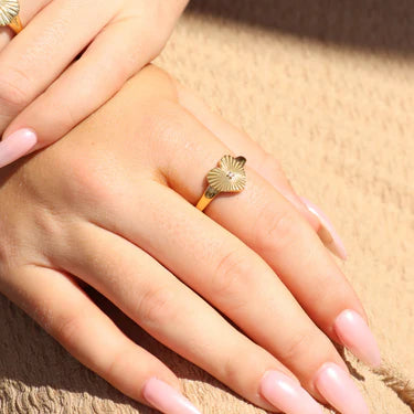 Tonglin Stainless Steel Cubic Zirconia Sunburst Heart Ring - Jewelry Supplier
